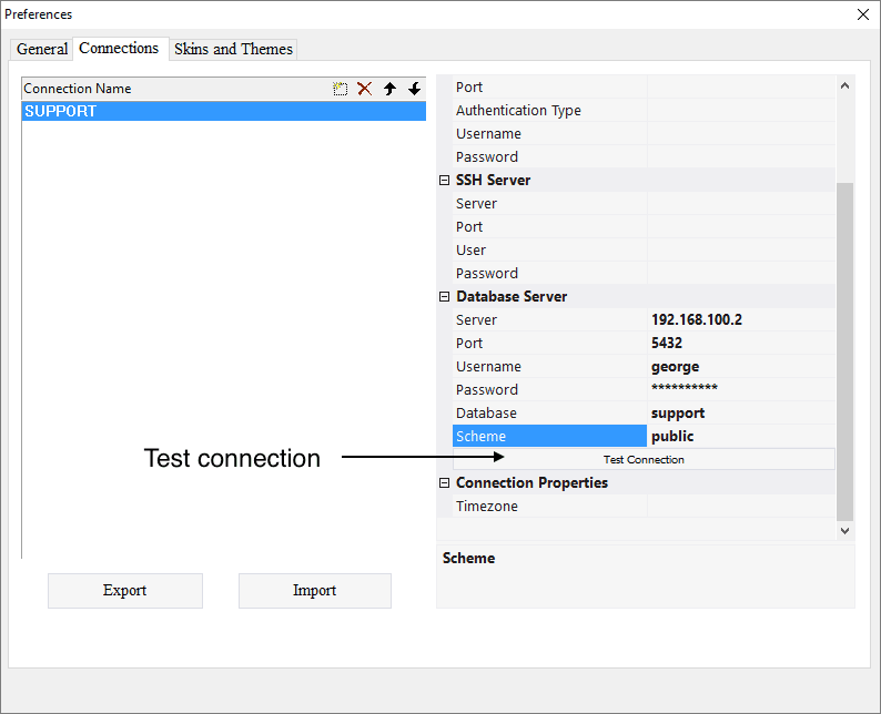 1.5.1.8. In n the field User of the section Database Server type in a username that has access to the database support;