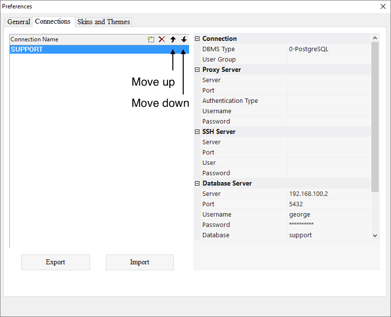 1.9.1.2. Move connection by clicking the Move Up or Move Down buttons.
