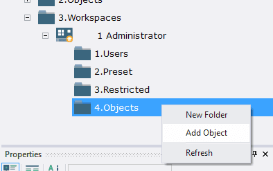 3.2.1.1. Open the context menu by right-clicking on folder 4.Objects;