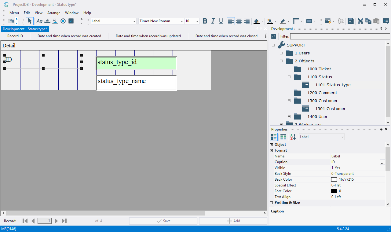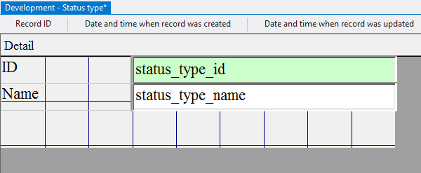 4.3.3.14. Press the left mouse button and, without releasing it, outline the size of label so that the label is left to the field status_type_id;