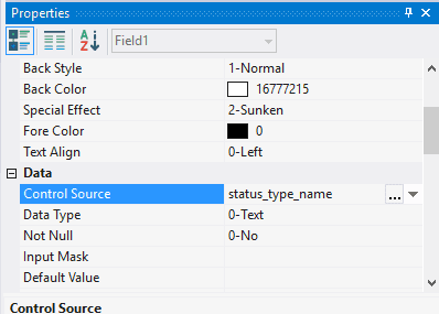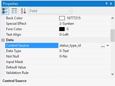 4.3.3.2. In the field Data Source choose database object - t_status_types;