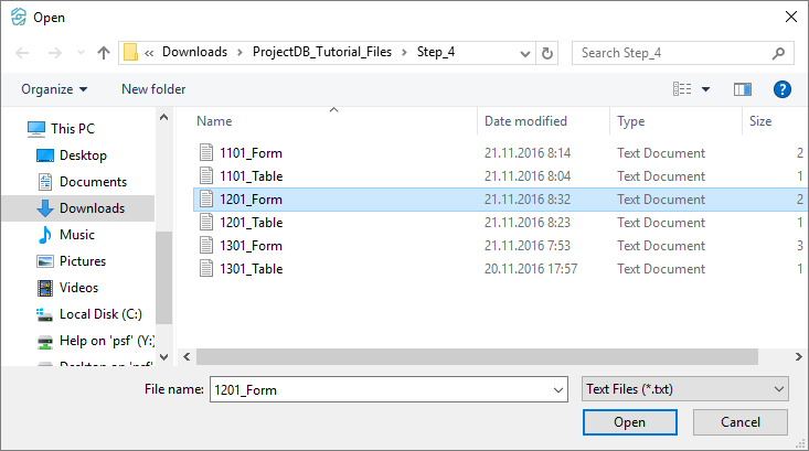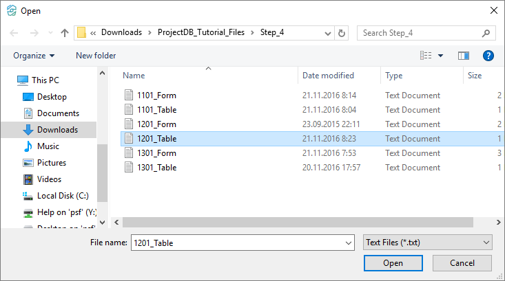 4.4.2.15. In the appeared window specify the path to the file 1201_Table;