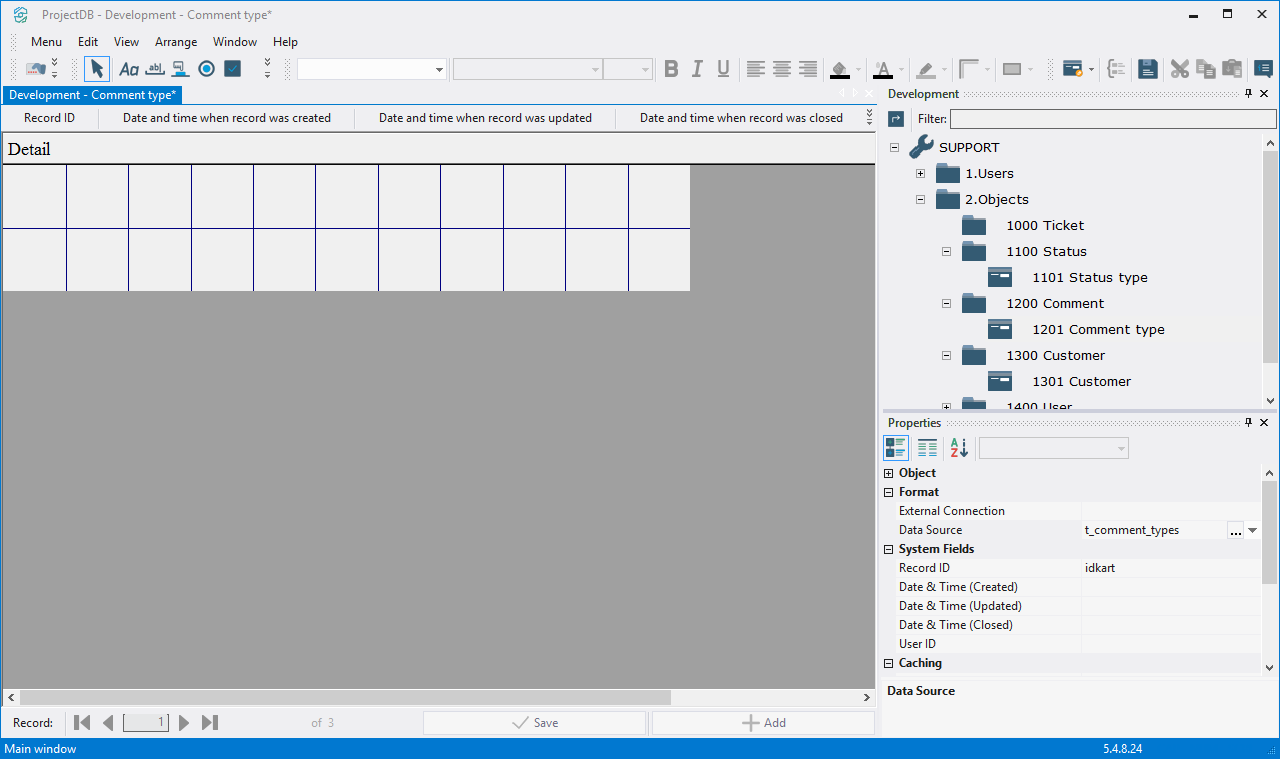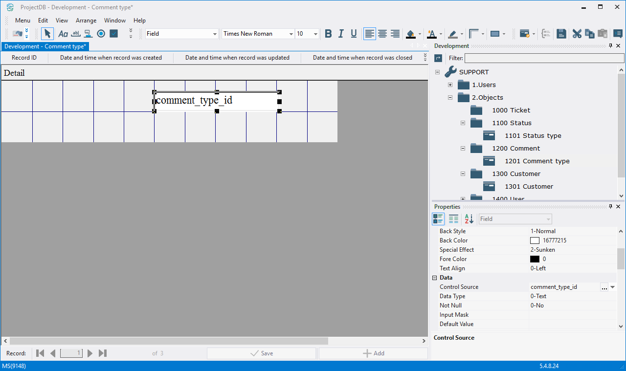 4.4.2.2. In the field Data Source specify the object - t_comment_types;