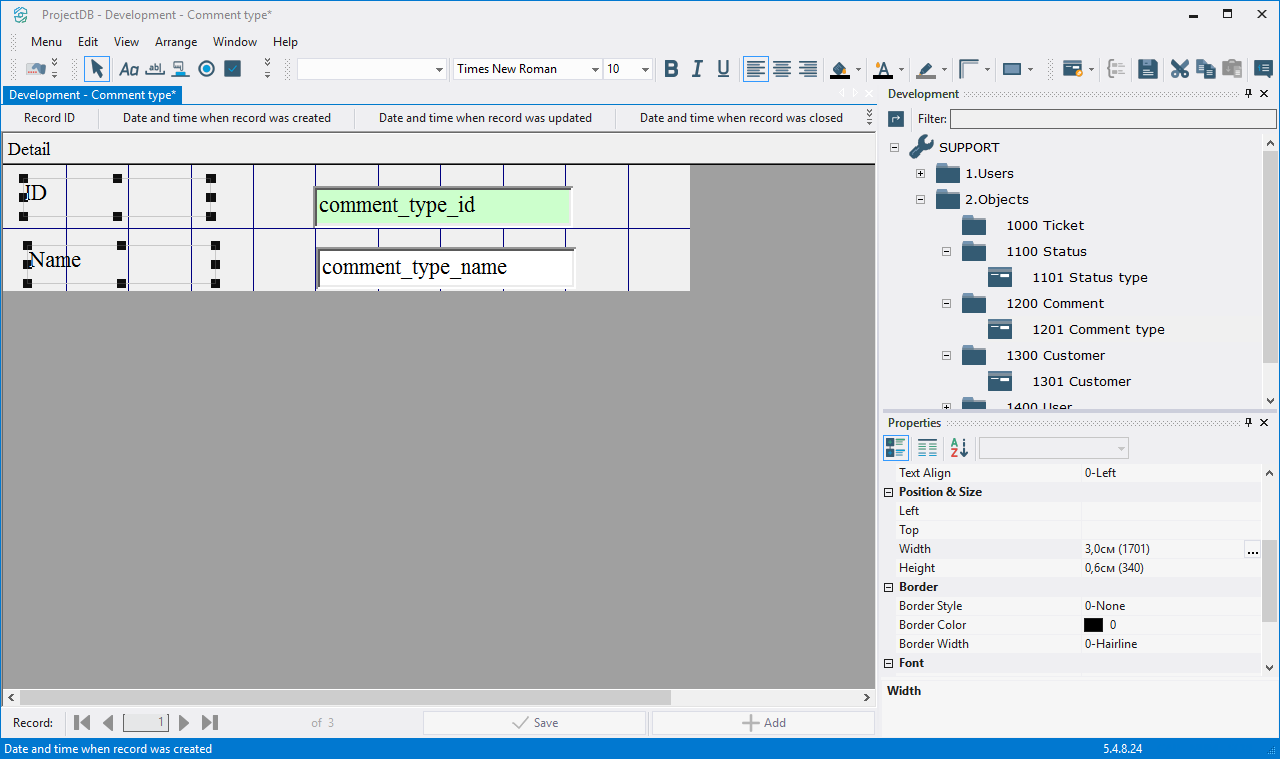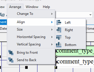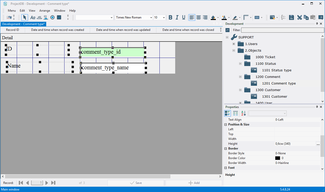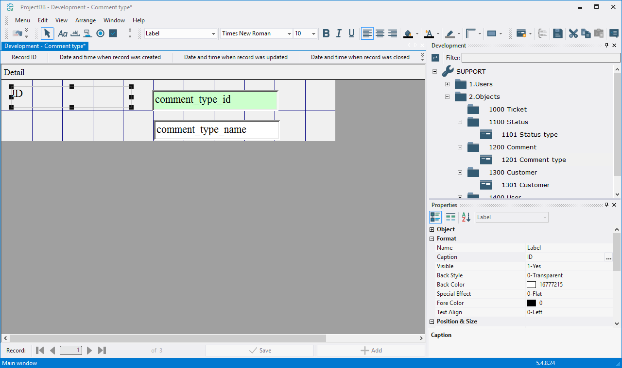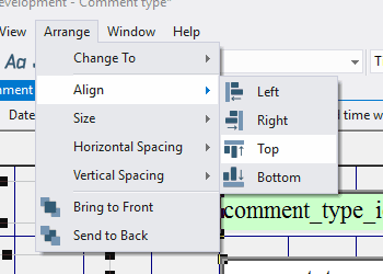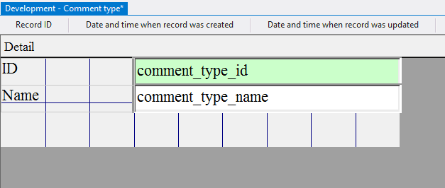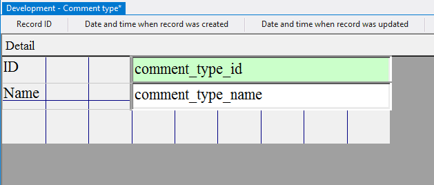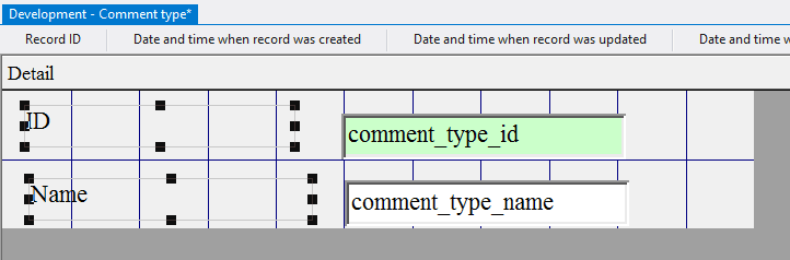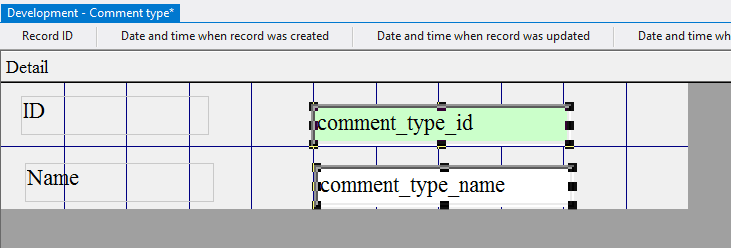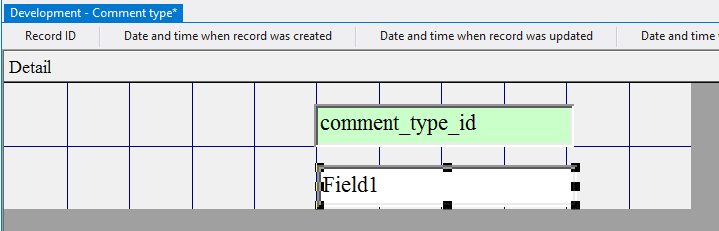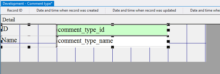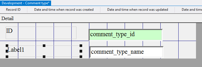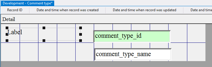 4.4.3.14. Press the left mouse button and, without releasing it, outline the size of label so that the label is left to the field comment_type_id;