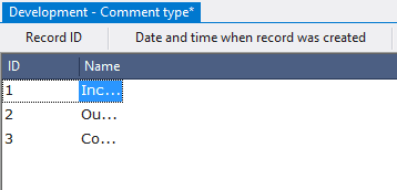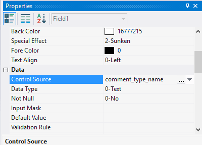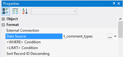 4.4.3.2. In the field Data Source choose database object - t_comment_types;