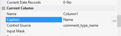 4.4.2.5. Select each column by clicking the left mouse button on any line of the table, specify in the field Caption the displayed name of the column - IDName respectively;