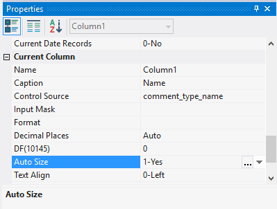 4.4.2.9. Select the last column and in the field Auto Size specify the value 1-Yes - column size will vary depending on the free space of the screen;