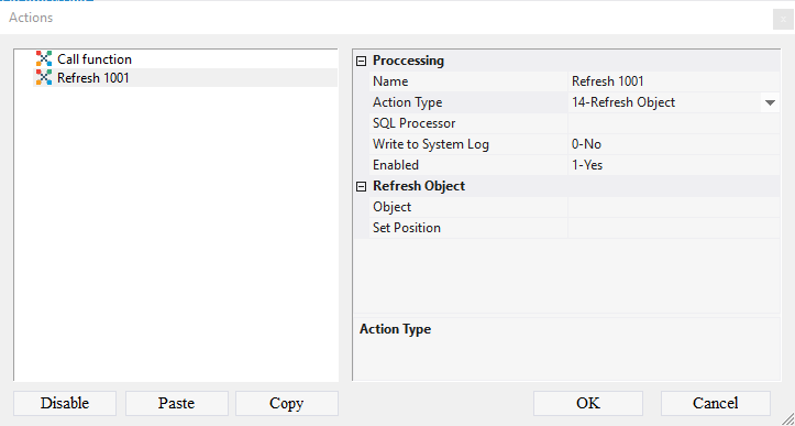 7.4.1.16. In the Action Type field, select 14-Refresh Object from the drop-down list;