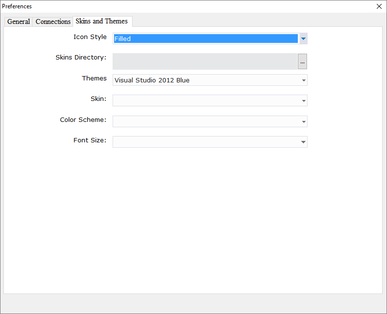 1.4.1.3. In the Themes field choose Visual Studio 2012 Blue;