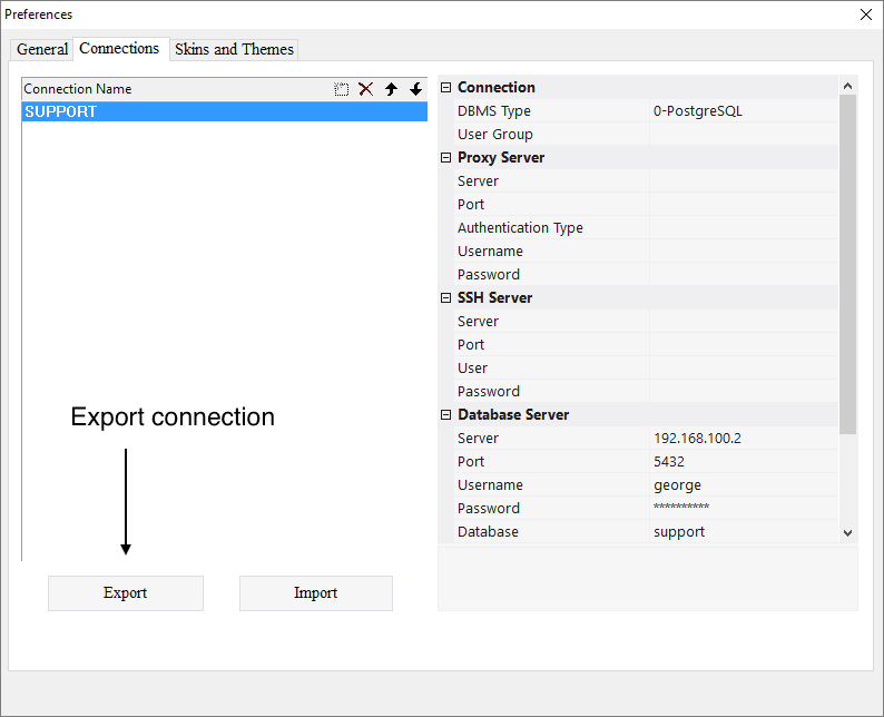 To export a connection: