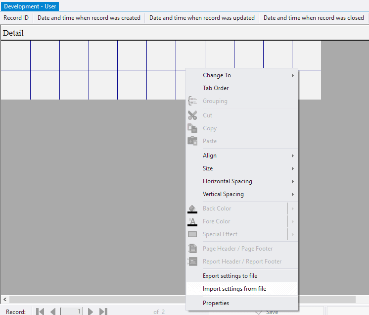 2.5.3.1. Go to Form Design by selecting View > Form Design, or by pressing the appropriate button in the toolbar;