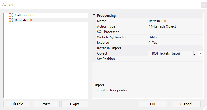 7.4.1.16. In the Action Type field, select 14-Refresh Object from the drop-down list;