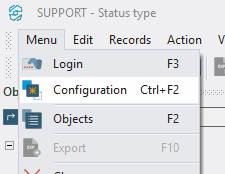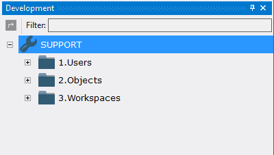 9.2.1.3. In the Configuration Development window, in the Connection field, select the SUPPORT connection;