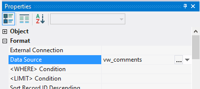 9.2.2.2. In the field Data Source specify the object - vw_comments