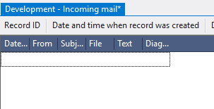9.2.2.5. Select each column by clicking the left mouse button on any line of the table, specify in the field Caption the displayed name of the column - Date and Time, From, Subject, File, Text, Diagnostic message accordingly;