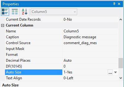 9.2.2.9. Select the last column and in the field Auto Size specify the value 1-Yes - column size will vary depending on the free space of the screen;