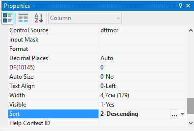 9.2.2.10. выделить колонку dttmcr и установить в поле Сортировка значение 2-по убыванию;