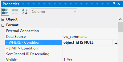 9.2.2.13. In the <WHERE> Condition field, specify the value object_id IS NULL