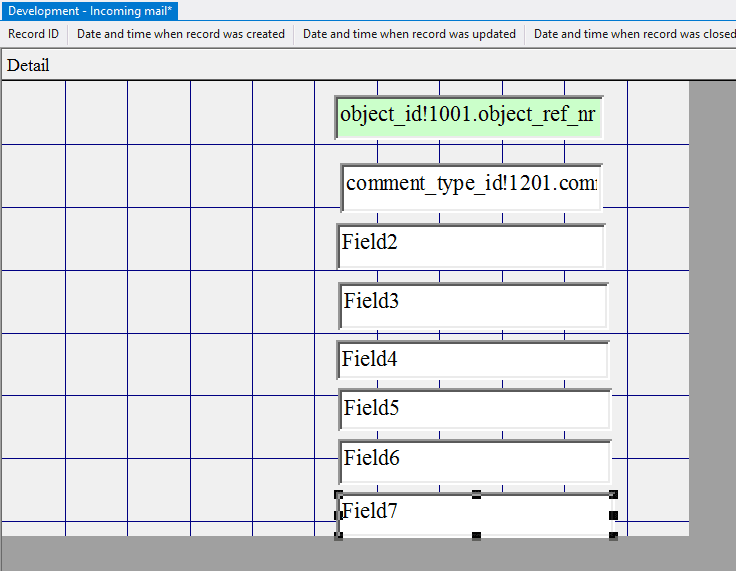 9.2.2.3. In system fields Record ID, Date & Time (Created), Date & Time (Updated), Date & Time (Closed), User ID, select accordingly fields file_id, dttmcr, dttmup, dttmcl, userid;