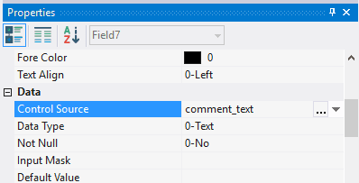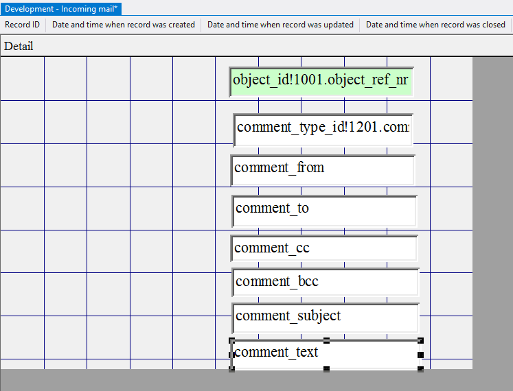 9.2.3.17. In the Control Source field for each added, choose accordingly comment_from, comment_to, comment_cc, comment_bcc, comment_subject, comment_text