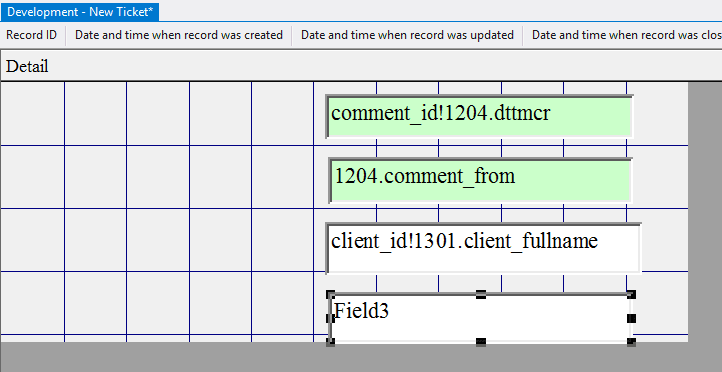 9.5.1.30. In the window that opens, enter the value =[1204].[comment_subject];