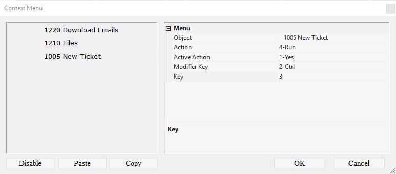 9.6.1.5. In the field Object select from the drop-down list action 1005 New Ticket;