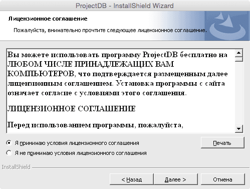 1.2.2.6. в появившемся окне указать путь до установочного файла ProjectDB_Setup.exe;
