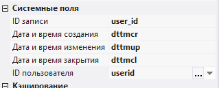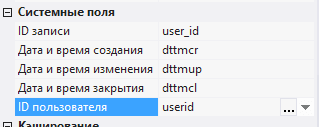 2.5.2.4. в cистемных полях ID записи (уникальный ID записи), Дата и время создания (дата и время создания записи), Дата и время обновления (дата и время последнего изменения записи), Дата и время закрытия (дата и время закрытия записи), ID пользователя (ID пользователя, создавшего запись) выбрать соответственно поля user_id, dttmcr, dttmup, dttmcl, userid;