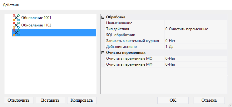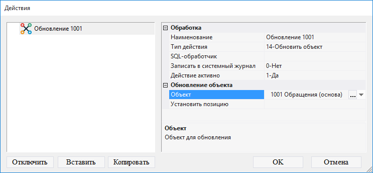 6.4.1.14. в поле Тип действия выбрать из выпадающего списка 14-Обновить объект;