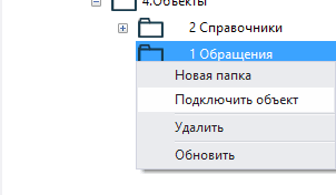 6.5.1.6. вызвать контекстное меню папки 1 Обращения;
