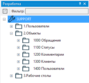 Теперь следует указать условия, по которым в объекте 1002 Обращения должны отображаться все текущие обращения, а в объекте 1003 Закрытые обращения - обращения в статусе Закрыто.
