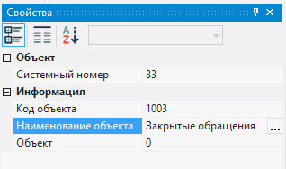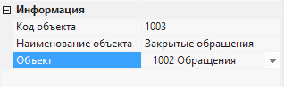 7.2.1.9. в окне Свойства в поле Код объекта ввести 1003, в поле Наименование объекта ввести Закрытые обращения;