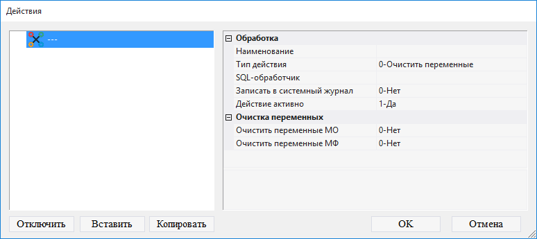 Внимание: если Вы хотите изучить механизм настройки действия детально, выполните шаги 8.5.1.5 - 8.5.1.17. Если Вы уже знакомы с тем, как осуществляется настройка действия, пропустите шаги 8.5.1.5 - 8.5.1.17 и перейдите к шагу 8.5.1.18.