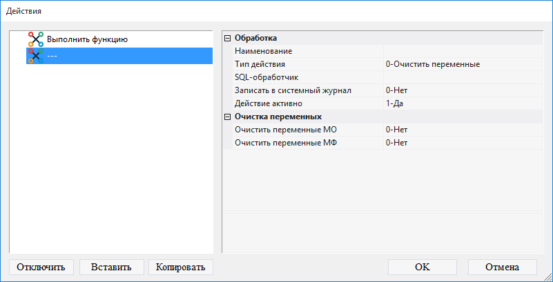 8.6.1.9. в поле Тип действия выбрать 1-Обработать данные;