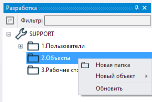2.4.5.1. вызвать контекстное меню нажатием правой кнопки мыши по папке 2.Объекты;